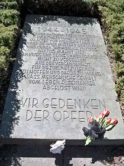 Massengrab auf dem Rühener Friedhof; Zustand 1970–2016, Grabplatte seit 1988