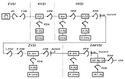 So wurden über den Auslandsrichtungskoppler (ARKpl) der AZVST entweder über den Kennzahlweg der ZGW oder über Querwege die FGW (Ferngruppenwähler) des eigenen ZVSt Bereiches sowie anderer ZVSt Bereiche angesteuert.