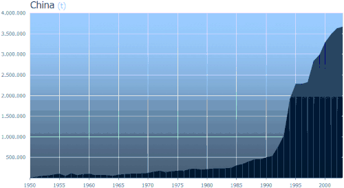 Schon vor 2.000 Jahren soll in China Austernzucht betrieben worden sein. Üblicherweise wachsen die Austern an Bambusstäben heran, die in der Gezeitenzone eingeschlagen werden, seit dem 20. Jahrhundert auch an Betonpfosten. Gegen Ende der 1970er Jahre wurde die japanische Technik der Langleinenzucht auch in China eingeführt, was zu einer deutlichen Steigerung der Produktion führte. 1950 betrug die Austernproduktion 7.100 Tonnen, 1980 war sie bereits auf 220.000 Tonnen angestiegen und mittlerweile steht sie bei 3,7 Millionen Tonnen (2003). China ist damit mit weitem Abstand der größte Austernproduzent der Welt. Welche Spezies gezüchtet werden, ist nicht ganz klar. Nach den Statistiken der FAO wird die gesamte Produktion der Pazifischen Felsenauster zugeschrieben. Tatsächlich handelt es sich aber wahrscheinlich bei nicht unbeträchtlichen Teilen der Zucht um die Chinesische Auster (Crassostrea ariakensis), die Zhe-Auster (Crassostrea plicatula) und die Suminoe-Auster (Crassostrea rivularis). In China ist kein eigentliches Zentrum der Austernkultivierung auszumachen. Entlang der 18.000 Kilometer langen Küste gibt es viele geschützte Buchten, die von Flüssen mit Nährstoffen versorgt werden und sich sehr gut für Austernzucht eignen. Die Produktion wird fast ausschließlich in Form von Austernfleisch in China selbst vermarktet, die Inlandsnachfrage ist enorm.