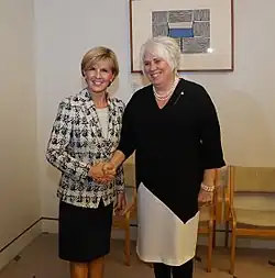 Australische Außenministerin Julie Bishop (links) mit der estnischen Außenministerin Marina Kaljurand während des estnischen Staatsbesuchs in Australien im Februar 2016