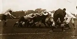 Europäische Einwanderer spielten schon sehr früh fußballähnliche Spiele, der erste Zeitungsbericht darüber erschien 1829 in Sydney. Die meisten dieser frühen Partien fanden im Rahmen lokaler Feste statt, wobei es keine klaren Regeln und keine kodifizierte Version gab. Die damals gespielten Varianten enthielten Elemente verschiedener heute existierender Regelwerke, darunter Australian Football, Fußball und Rugby. Trafen zwei Mannschaften aufeinander, mussten sie jeweils vor Spielbeginn die anzuwendenden Regeln festlegen. Welche Varianten in welcher Gegend vorherrschten, lässt sich nicht mehr nachvollziehen, zumal sie alle als football bezeichnet wurden.[11] Der erste Verein außerhalb des Mutterlandes Großbritannien, der kodifizierten Rugby-Regeln folgte (der weltweit achtälteste), war der im Jahr 1863 gegründete Sydney University Football Club, der am 19. August 1865 das erste offizielle Spiel organisierte.[12]
