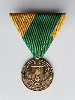 In der Geschichte der Auszeichnungen findet man auch solche, die auf Bezirksebene von den jeweiligen Feuerwehrkommanden verliehen werden, wie das Beispiel Oberösterreich zeigt.[1] Diese Feuerwehr-Verdienstmedaillen der Bezirke werden seit den 1970er Jahren verliehen und stellen bis heute eine Spezialität dieses Bundeslandes dar. Geschaffen wurden sie wohl als „Kompensation“ für die fehlende Auszeichnungsmöglichkeit durch den Landesfeuerwehrverband (siehe oben).