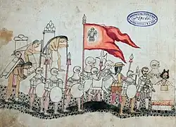 Die Nahua-Völker stammten von den Chichimeken-Völkern ab, die im frühen 13. Jahrhundert aus dem Norden nach Zentralmexiko einwanderten.[7] Die Migrationsgeschichte der Mexica (Azteken) ähnelt der anderer zentralmexikanischer Staaten mit übernatürlichen Stätten, Personen und Ereignissen, die auf der Suche nach politischer Legitimation die irdische und göttliche Geschichte miteinander verbanden.[8] Nach den piktographischen Chroniken, in denen die Azteken ihre Geschichte festhielten, wurde der Herkunftsort Aztlán genannt. Frühe Migranten besiedelten das Tal von Mexiko und die umliegenden Flächen, indem sie eine Reihe unabhängiger Stadtstaaten gründeten. Diese frühen Nahua-Stadtstaaten oder Altepetl wurden von dynastischen Oberhäuptern regiert, die tlatoque (Singular, tlatoani) genannt wurden. Die meisten der bestehenden Siedlungen waren vor der mexikanischen Migration von anderen indigenen Völkern errichtet worden[5].