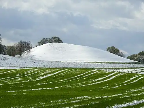 Beim Bäckerbichl handelt es sich um einen solchen Tumulus. Er liegt auf einer Höhe von 726 m ü. NN in der Isar-Loisach-Jungmoränenregion und bedeckt eine Fläche von 8000 Quadratmetern.[5]