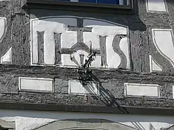 Einfachste Farbmalerei an einem Bauernhaus in Jestedt (Werra-Meißner-Kreis) von 1586. -