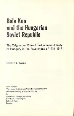 - Rudolf L. Tőkés: Béla Kun and the Hungarian Soviet Republic. The Origins and Role of the Communist Party of Hungary in the Revolutions of 1918–1919. F. A. Praeger, New York City 1967, OCLC 164461278 (englisch).