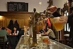Das tschechische Bier ist weltbekannt und hat eine lange Brautradition. Die Pilsner Brauart hat sich weit über Tschechien hinaus verbreitet. International bekannte Marken sind zum Beispiel Pilsner Urquell, Budweiser, Velkopopovický Kozel, Staropramen, Starobrno, Bernard, Svijany oder Březňák. Die Tschechen sind Weltmeister im Biertrinken. So trinkt nach einer Statistik von 2014 ein Tscheche 144 Liter, ein Deutscher 107 Liter und ein Österreicher 104 Liter Bier im Jahr.[3] Vor 1990 gab es in Tschechien zahlreiche Brauereien. In der Folgezeit setzte ein Brauereisterben ein, doch dieser Trend hat sich mittlerweile wieder umgekehrt. Die Zahl der Brauereien wuchs von 66 im Jahr 2000 auf 163 im Jahr 2011 an, was vor allem auf einen Boom bei den lokalen Kleinbrauereien zurückzuführen ist.[4]