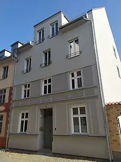 Die Fassade ist im Stil der Barockzeit gestaltet. Über dem Erdgeschoss und auch unter der Traufe verlief ein Zahnschnittfries. Vom Haus war Stand 2017 nur noch die Straßenfront mit der Haustür erhalten, später wurde es wieder aufgebaut.
