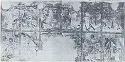 - die Grablegung mit Josef von Arimathäa und vier trauernden Frauen (Mt 27,57–61 ).