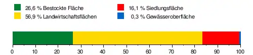 Es besteht zu 26,6 % aus bestockter Fläche, zu 56,9 % aus Landwirtschaftsfläche, zu 16,1 % aus Siedlungsfläche und zu 0,3 % aus Gewässerfläche.