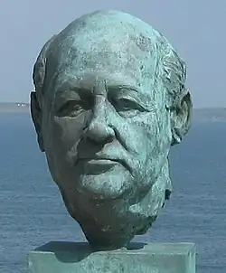Die Büste ist ein voll- oder reliefplastisches Bildnis oder eine Plastik einer in der Regel individuellen Person, das den „Kopf mit Oberkörperanschnitt“[1] zeigt, oder allgemeiner eine „Darstellung eines Menschen, die nach unten durch Schulter, Brust, Leibes- oder Körpermitte […] begrenzt wird“.[2]