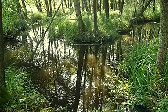 Der Břehyňský potok fließt auf seinem gesamten Lauf mit geringem Gefälle durch Feuchtgebiete unterhalb von Sandsteinfelsen. Der Mittellauf und der größte Teil seines Oberlaufes sind Teil des Nationalen Naturreservats NPR Břehyně-Pecopala. Das Mündungsgebiet des Břehyňský potok in den Máchovo jezero ist als Nationales Naturdenkmal NPP Swamp geschützt.