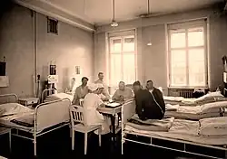 Im Hirnverletztenheim selbst waren viele der Patienten aber noch erheblich pflegebedürftig. Hier bedeutete es eine große Erleichterung als die St.-Josefs-Kongregation Ursberg sich bereitfand, die pflegerische Betreuung durch ihre Schwestern zu leisten. Das Heim wurde weiter aufgebaut, ein Erweiterungsbau erhöhte die Zahl der Betten auf über 100, eine großangelegte Bäder- und Bestrahlungsanlage kam hinzu. Bis zum Beginn des Zweiten Weltkriegs waren beide – sowohl das Hirnverletztenheim als auch die Jugendpsychiatrie – voll belegt.[3]