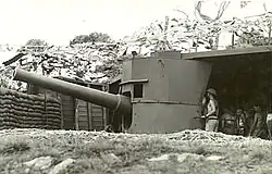 - ↑ Peter Dunn, "two emplaced at the fortress from 1938 to 1945. It was originally from South Head - Sydney and was one of the four BL guns from the Colony of NSW which was sent to England in the late part of the 19th Century to be converted to QF"