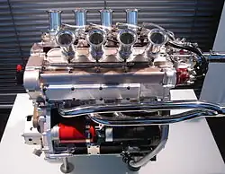 1966 wurde der neue Formel-2-Rennmotor BMW M10* mit dem von Ludwig Apfelbeck erdachten Vierventil-Zylinderkopf fertig, dessen Steuerung längere Zeit geheim gehalten und im Juli 1967 ausgelegt wurde.[6] Abgeleitet vom Serienmotor des BMW 2000 besaß der DOHC-16V-2-Liter-Motor eine Kugelfischer-Einspritzung und eine Flachschieberanlage. Der Hubraum betrug 1990 cm³ (Bohrung × Hub: 89 mm × 80 mm), sein größtes Drehmoment von 236 Nm erreichte der Motor bei 8000 min−1. Die Höchstleistung wird mit 191 kW (260 PS) bei 8500 min−1 angegeben.