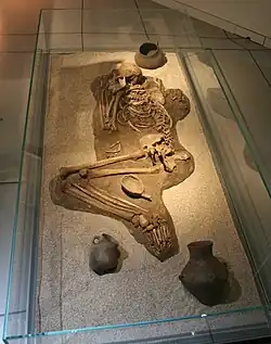 Als Grabbeigaben wurden Gefäße, darunter Kombinationen von Kanne und Tasse gefunden.