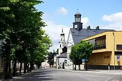 - Die 1340 erstmals erwähnte Pfarrkirche Mariä Geburt (Kościół parafialny Narodzenia NMP) wurde zwischen 1922 und 1924 im neobarocken Stil errichtet und ersetzte einen baufälligen Vorgängerbau. Geweiht wurde die Kirche 1924 durch den durch Olmützer Erzbischof Leopold Prečan.[11] Der Kirchenbau steht seit 1966 unter Denkmalschutz.[10]