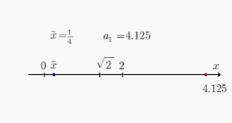 - Zunächst wird von diesem Zweier-Exponenten eine gerade Anzahl abgespaltet, so dass als Exponent entweder eine 0 oder 1 übrig bleibt, die Zahl also auf das Intervall normalisiert wird. In diesem Intervall ist die Wurzelfunktion eine nur schwach gekrümmte Kurve, lässt sich also numerisch gut behandeln. Beispiel:, es wird also vorerst nur noch mit dem Ziel behandelt.