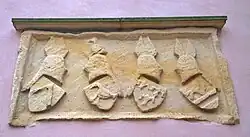 - ↑ Agnes Eltern hatten einen kleinen Burgsitz in Weckbach, siehe Leben und Zusammenleben im ehemaligen "Freien Gericht vor dem Berge Welmisheim". Dort befindet sich noch an der Kirche eingemauert ein ähnlicher Wappenstein mit einem Allianzwappen Schelris/Erlenbach