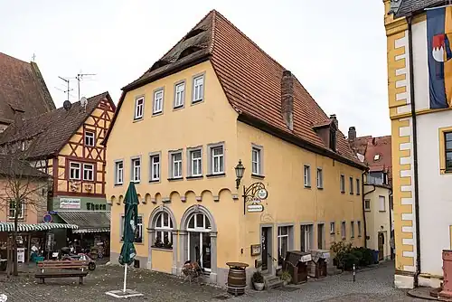 - ↑ Günther Schmitt: Häuserchronik der Stadt Volkach als Spiegel des Bürgertums. Vom Ende des 17. Jahrhunderts bis heute (= Volkacher Hefte Bd. 19). Volkach 2017. S. 70.