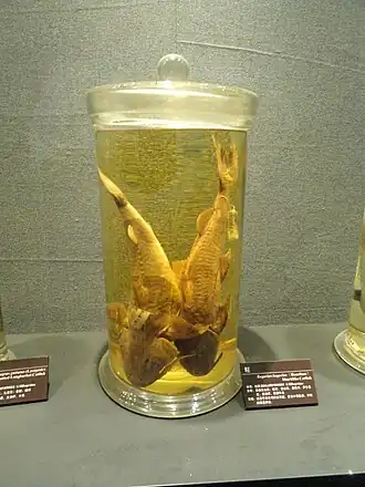 Bagarius bagarius, konservierte Exemplare am Kunming Natural History Museum of Zoology | ||||||||||||