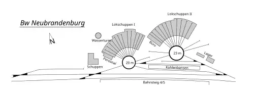 Das Bahnbetriebswerk Neubrandenburg (kurz Bw Neubrandenburg), seit 1994 als Betriebshof Neubrandenburg (kurz Bh Neubrandenburg) bezeichnet, wurde 1864 eröffnet und diente der Wartung, Reparatur und Bereithaltung von Dampf- und später Diesellokomotiven, die in Neubrandenburg beheimatet waren oder dort Zugleistungen erbrachten. 1945 wurde das Bw, das bisher der Reichsbahndirektion Schwerin unterstanden hatte, der Reichsbahndirektion Greifswald zugeteilt.