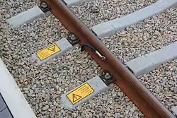 Werden bei elektrisch betriebenen Bahnen die Fahrschienen als Stromrückleitung verwendet, entsteht zwischen den Schienen und der Erde eine Potentialdifferenz,[5] deren Höhe von verschiedenen Faktoren abhängt.[6] Je nach Längswiderstand der Rückleitung, Höhe des Betriebsstromes,[7] Abstand zum Unterwerk (Umspannwerk) und Fahrbetrieb in den angrenzenden Strecken[6] kann das Schienenpotential unzulässig hohe Werte erreichen.[7] Die Berührungsspannung kann zur Gefährdung von Personen führen, die zugleich Kontakt mit den Gleisen und dem Erdboden oder einem geerdeten Bauteil aus Metall haben.[8]