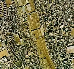 Die Nippon Tetsudō, Japans erste private Bahngesellschaft nahm am 28. Juli 1883 die Strecke von Ueno nach Kumagaya in Betrieb, die heute je einem Teil der Tōhoku-Hauptlinie und der Takasaki-Linie entspricht.[7] Zwischen Urawa (der damaligen Präfekturhauptstadt) und Ageo existierte trotz der Entfernung von mehr als 14 Kilometern kein Zwischenbahnhof. Dies war insbesondere darauf zurückzuführen, dass Ōmiya lediglich ein kleines Dorf war und ein zusätzlicher Zughalt nicht lohnenswert schien. Eine Gruppe von Einwohnern setzte sich daraufhin für den Bau eines Bahnhofs ein, indem sie Grundstücke entlang der Bahnstrecke zur Verfügung stellte. Bald stellte sich die Frage, an welcher Stelle die geplante Strecke in Richtung Aomori abzweigen sollte. Zur Auswahl standen Kumagaya, Urawa und Ōmiya. Zunächst schien es so, als ob Kumagaya den Vorzug erhalten würde, weil dadurch mit Kiryū und Ashikaga zwei Zentren der aufstrebenden Textilindustrie hätten erschlossen werden können. Ein amerikanischer Ingenieur, der die Nippon Tetsudō beriet, empfahl hingegen Ōmiya als Abzweigbahnhof, weil dadurch eine möglichst direkte Strecke entstünde. Inoue Masaru fasste als Direktor des staatlichen Eisenbahnamtes den entsprechenden Beschluss. Der Bahnhof wurde am 16. März 1885 eröffnet, das abzweigende Teilstück nach Kurihashi am 16. Juli desselben Jahres.[7] 1894 folgte die Inbetriebnahme eines Bahnbetriebswerks und eines Abstellbahnhofs auf dem Gelände unmittelbar nördlich des Bahnhofs. In den Jahren danach entwickelte sich Ōmiya zu einer typischen Eisenbahnerstadt.[8]
