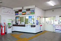 Vor dem Bahnhof befindet sich eine Bushaltestelle der Gesellschaft Kushiro Bus.