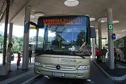 Beim Bahnhof befindet sich ein Busbahnhof, der 2008 eröffnet wurde. Es gibt vier Bussteige, drei für den Regionalverkehr (betrieben von Postbus und sabtours) sowie einen für den Stadtverkehr (betrieben von Stern & Hafferl). Folgende Linien halten hier: