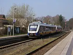 - ↑ a b c Denkmalplakette für den Bahnhof.