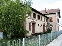 Beim früheren Empfangsgebäude, das um 1870 errichtet wurde, handelt es sich um einen sogenannten „Typenbau“ aus Backstein. Es stammt aus der Eröffnungszeit des Bahnhofs und steht unter Denkmalschutz.[16] Für den Bahnbetrieb besitzt es inzwischen keine Bedeutung mehr.