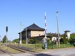 Empfangsgebäude an der Strecke Bad Kleinen–Rostock mit Stellwerk