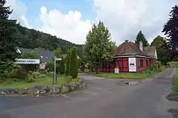 Beim Empfangsgebäude handelt es sich wie seine Pendants an den restlichen Bahnhöfen der Strecke um einen Fachwerkbau. Für den Bahnbetrieb selbst hat es keine Bedeutung mehr und dient inzwischen einem Gastronomiebetrieb.[18] Früher bestand südlich des heutigen Streckenendpunkts und der Straße nach Rumbach ein Lokschuppen aus Fachwerk mit entsprechenden Anlagen zur Behandlung.[8] Die von 1921 bis 1930 verkehrende Wasgauwaldbahn besaß ein eigenes Betriebswerk südlich der schmalspurigen Anlagen.[19]