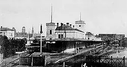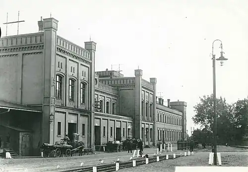 Der Bahnhof Legetor wurde am 5. August 1852 eröffnet. Am 6. September lief der erste Zug ein. Das Gebäude und die Innenräume wurden in den Jahren von 1871 bis 1872 umgebaut. Die 1870 eröffnete Bahnstrecke Stettin–Danzig endete am Bahnhof Hohetor. Im Jahr 1886 stellte eine Linie der Pferdebahn die Verbindung durch die Innenstadt bis zum Fischmarkt her. Gütergleise wurden 1884 bis auf die Speicherinsel und 1893 entlang der Bastionen zum Schlachthof am Englischen Damm (ulica Angielska Grobla) verlegt.