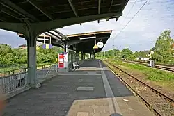 Von den ehemals fünf Bahnsteiggleisen sind nur noch die Gleise 4 und 5 an einem Inselbahnsteig übrig geblieben. Der südliche Inselbahnsteig wurde nach der Abtragung des Bahndammes ebenfalls zurückgebaut.