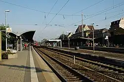 Der Bahnhof verfügt über vier Durchgangsgleise, wovon die Gleise 1 und 4 für durchfahrende Fern- und Regionalzüge und die Gleise 2 und 3 für den S-Bahn-Verkehr genutzt werden. Zur weiteren Ausstattung jedes Bahnsteigs gehören digitale Zugzielanzeiger und witterungsgeschützte Sitzgelegenheiten. Alle Bahnsteige sind über eine Fußgängerunterführung miteinander sowie dem Bahnhofsvorplatz östlich als auch dem Busbahnhof westlich des Bahngeländes verbunden. Der Ostzugang wird über Fahrtreppen durch das Empfangsgebäude als auch über eine Rampe barrierefrei von der Westlichen Stadtmauerstraße hergestellt, der Westzugang vom Busbahnhof erfolgt niveaugleich.