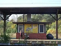 Auf dem Mittelbahnsteig blieb ein kleines Aufsichtsgebäude erhalten, das vermutlich aus den 1930er Jahren stammt. Im Inneren sind noch einzelne Elemente aus der Zeit der aktiven Nutzung des Baus vorzufinden, wie etwa ein Schreibpult und ein Aufenthaltsraum.[7]