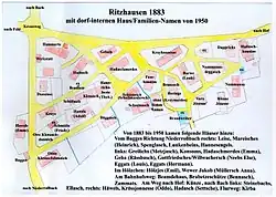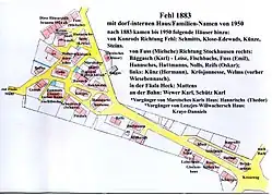 Die ländliche Tradition der Haus- bzw. Hofnamen und deren Übertragung auf die Bewohner war und ist auch noch in Fehl-Ritzhausen weit verbreitet, gerät aber zunehmend in Vergessenheit. Auf den Abbildungen Hausnamen in Ritzhausen und Hausnamen in Fehl sind die 1950 und auch heute noch gebräuchlichen Haus- bzw. Familiennamen von 1950 eingetragen.[5]