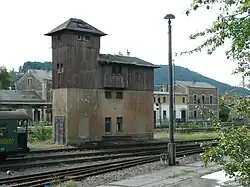2015 erhaltene Umladehalle der Schmalspurbahn