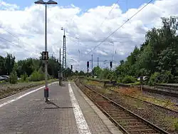 - Gleis 7 war ein Gütergleis und hatte auf der östlichen Seite eine Ladefläche. Die Fläche ist noch vorhanden und abgesperrt, das Gleis wurde zurückgebaut. Es zweigte im Bahnhof an örtlich handbedienten Weichen ab.