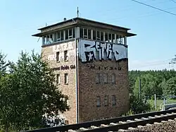 Das charakteristische Fahrdienstleiterstellwerk Ghb steht an der Kreuzung von Außenring und Anhalter Bahn und ist nicht mehr in Betrieb.