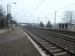 Der Bahnhof besitzt zwei Durchgangsgleise und zwei von diesen nach außen abzweigende Bahnsteiggleise. Beide Bahnsteige sind über eine Fußgängerbrücke miteinander verbunden. Diese Anlage ist typisch für eine Reihe von Bahnhöfen am Berliner Außenring. An beiden Bahnhofsenden gibt es Weichenverbindungen. Am nördlichen Zugang befindet sich ein nicht mehr genutztes Bahnhofsgebäude und ein Vorplatz mit Bushaltestellen. Der südliche Zugang führte früher direkt ins IFA-Werk. Heute befindet sich dort ein öffentlicher Weg durch das Industriegelände. Westlich des Bahnhofs liegt eine Kleingartenanlage und etwas weiter nordöstlich die neue Justizvollzugsanstalt Heidering Wohnbauten im unmittelbaren Bahnhofsumfeld gibt es nicht.