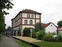 Heute ist im Bahnhofsgebäude ein Restaurant mit Biergarten untergebracht.