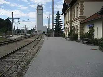 Neben den beiden Bahnsteiggleisen gibt es direkt neben dem Bahnhofsgebäude noch ein Lade-/Anschlussgleis zum Lagerhaus Hötzelsdorf sowie ein Durchfahrtsgleis.