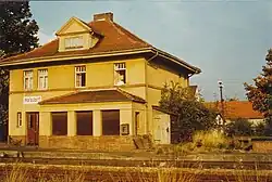 Zehn Jahre nach der Einstellung des Personenverkehrs wurde auch der Güterverkehr eingestellt und das ehemalige Bahnhofsgebäude zu einer Wohnvilla umgebaut,[6] welche sich heute im Privatbesitz befindet. Auf der Westseite des ehemaligen Bahnhofs wurde der Bahnhofsschriftzug beibehalten, die Schienen sind jedoch der parkähnlichen Gartenanlage gewichen.[7]