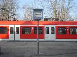 Im Zuge des S-Bahn-Ausbaus ersetzte die Deutsche Bundesbahn die Zwischenbahnsteige durch einen 76 cm hohen und 210 m langen Mittelbahnsteig zwischen den Hauptgleisen 1 und 2.[23] Gleis 1 wurde dabei zum Stumpfgleis zurückgebaut und endete fortan nördlich des Empfangsgebäudes, sodass ein direkter Zugang vom Empfangsgebäude zum Mittelbahnsteig bestand. Zur Fahrgastinformation kamen von 1972 bis 2014 Fallblattanzeiger zum Einsatz. Nach 1994 baute die Deutsche Bahn die Ladegleise und die Weichen im Südkopf ab, sodass die Gleise 2 und 3 ebenfalls zu Stumpfgleisen wurden.[5] Beim barrierefreien Ausbau bis 2014 verschob die DB den Mittelbahnsteig und die Gleise 2 und 3 nach Norden, erhöhte den Bahnsteig auf 96 cm und stattete ihn mit einem Bahnsteigdach aus.[13] Neben den Bahnsteiggleisen 1 und 2 und dem Abstellgleis 3 ist nördlich des Bahnübergangs weiterhin ein zusätzliches Abstellgleis östlich des Streckengleises vorhanden.[24]