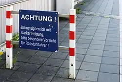 Die Bahnsteige der Neubaustrecke reichen knapp für einen Regionalzug mit sechs Wagen aus. Eine Hälfte des ersten oder letzten Wagens steht dabei bei einem Halt außerhalb des Bahnsteigbereichs.[1] Sie liegen in einem Längsgefälle von bis zu 20 Promille und erhielten spezielle Sicherungsmaßnahmen. Dazu zählen rollhemmende Beläge und Schwellen, um unbeabsichtigt abrollende Objekte zu stoppen und in Richtung der Seitenwände zu lenken.[8] Der Bahnhof gilt damit als der steilste Regionalbahnhof in Deutschland.[1]