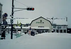 Aufgrund eines Gaslecks brannte das Bahnhofsgebäude am 10. Dezember 2000 vollständig nieder.[10] Daraufhin errichtete JR Hokkaido innerhalb von 24 Tagen ein temporäres Ersatzgebäude aus vorgefertigten Teilen.[11] Die Planungsphase für einen Neubau zog sich fast fünf Jahre hin, da die Stadtbehörden diese Gelegenheit dazu nutzen wollten, das Bahnhofsviertel vollständig neu zu gestalten. Das Ergebnis des Architektenwettbewerbs wurde am 5. März 2005 bekanntgegeben, das neue Bahnhofsgebäude am 23. Juni 2007 provisorisch eröffnet. Abgeschlossen war das Projekt am 30. März 2009.[12]