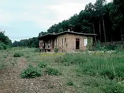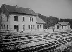 Zudem besaß der Bahnhof eine Güterabfertigung, die ebenfalls noch vorhanden ist. Im südlichen Bahnhofsbereich befanden sich zwei Lagerhäuser sowie eine Laderampe. Unmittelbar nördlich des Bahnhofsgebäudes befand sich ein Haus, das als Waschküche und Abort fungierte. In diesem Bereich lag zudem der Bahnsteig.[19]